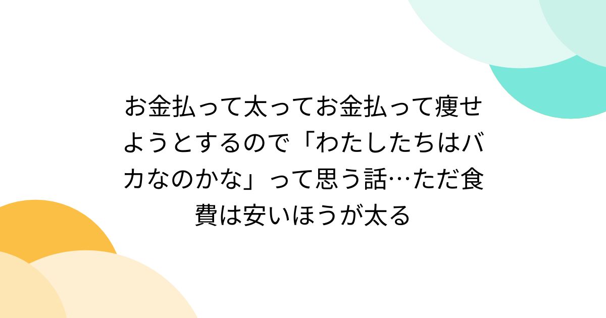 お金払って太ってお金払って痩せようとするので「わたしたちはバカなのかな」って思う話 ただ食費は安いほうが太る - Togetterトゥギャッター。
