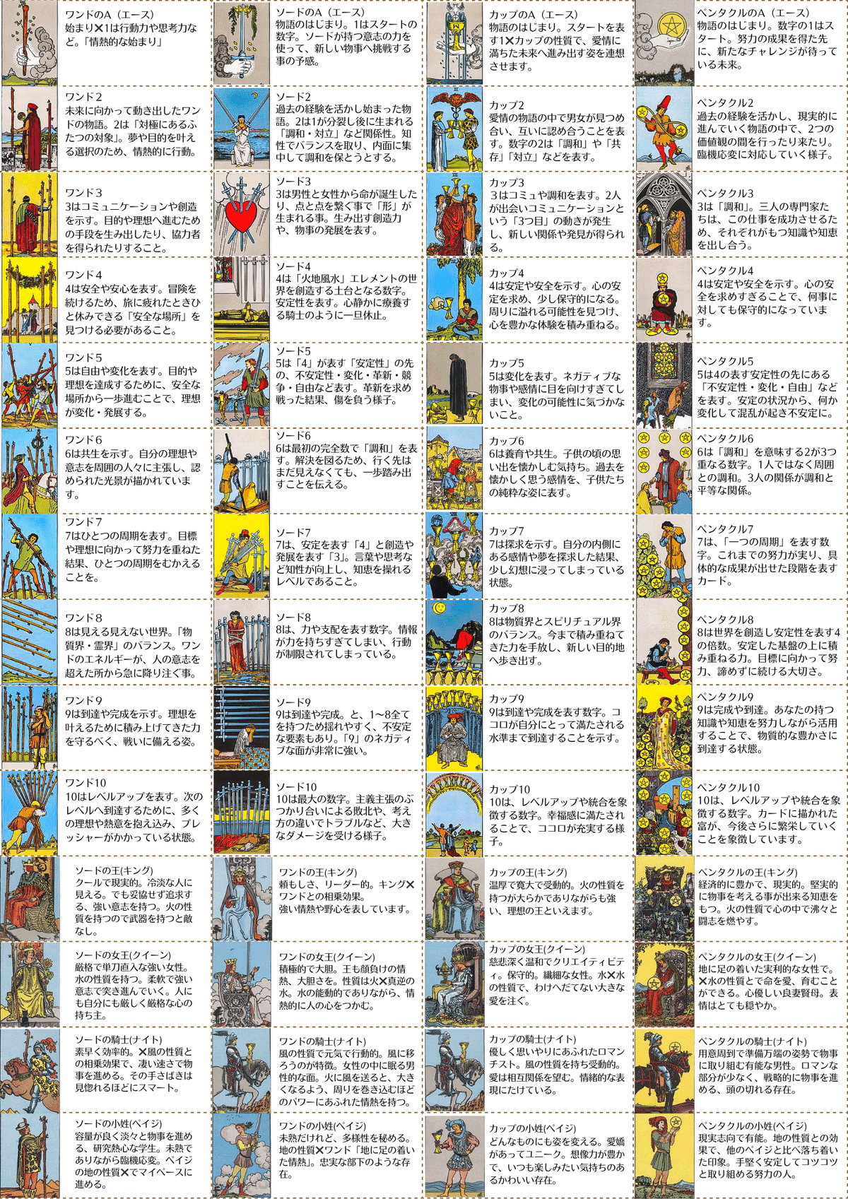 タロット小アルカナ意味☆一覧表を送ります マルセイユ版とウェイト版*すぐに分かる!タロットカード一覧表ココナラ。