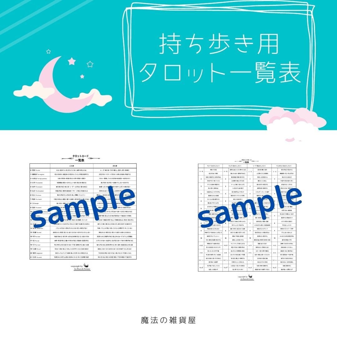 PDF タロットカードの一覧表 早見表魔法の雑貨屋。