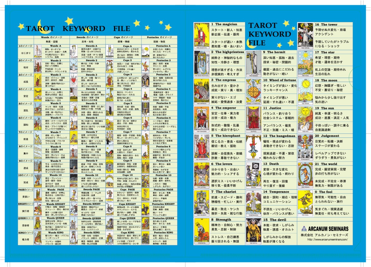 タロットカードの意味 一覧表 ダウンロード用PDF- 朝日奈明美 - Akemi Asahina。