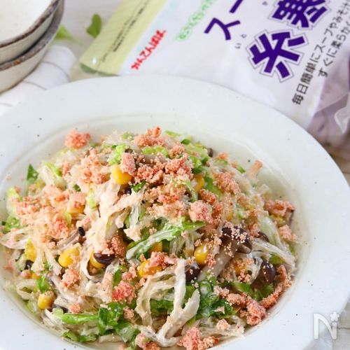 作り置きおかず 糸寒天で!きのことキャベツの明太子マヨサラ。