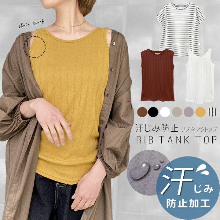 楽天市場 汗染み防止 インナー レディース 汗取り タンクトップ レディース 可愛い 汗取りインナー キャミソール 汗とりインナー 汗じみ トップスレディース 半袖 きれいめ 吸汗速乾 リブ 汗ジミ 背汗 汗じみ防止 リブ タンクトップ リブ カットソー ノースリーブ。
