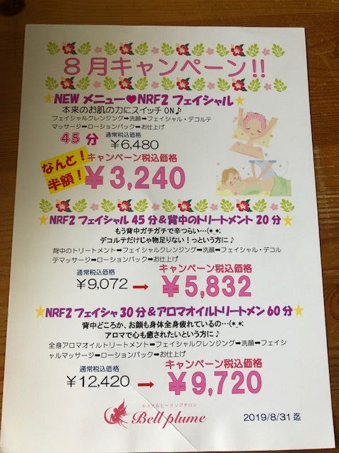 キャンペーンのポップ ^^♪エステ&ヒーリングサロン ベル♥プリュム。