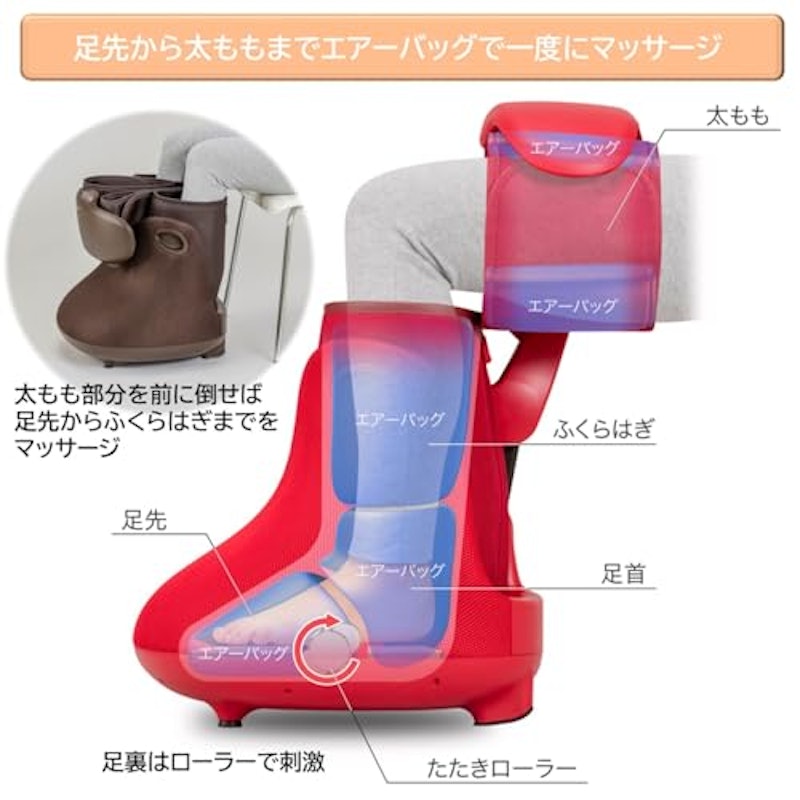 TWINS TCH-001-FR フレッシュレッド 柔足エアフットマッサージャー箱潰れ・特価品1年保証 TCH-001 狙い揉みエアフット マッサージャー 柔足 ふくらはぎ すね スネ 足首 電動 マッサージ機 マッサージ器 ツインズ。