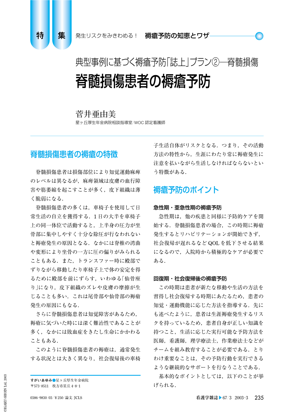 ② 脊髄損傷脊髄損傷患者の褥瘡予防看護学雑誌 67巻3号医書.jp。