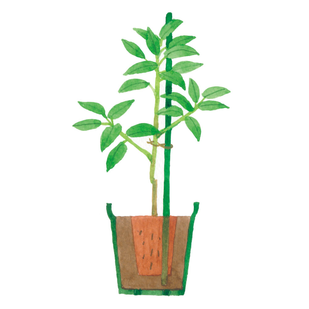 月刊 現代農業2021年11月号 誰でもできる 鉢植えアボカド 第5回 誘引――枝を45度にして生長をコントロール。