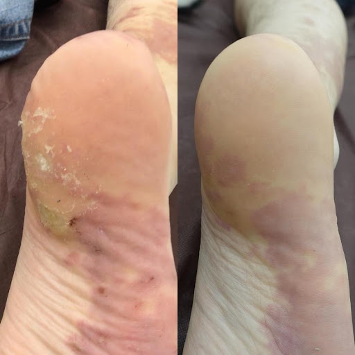 𓂃𖤥𖥧𖥣⋆* この写真は疣贅 ユウゼイヒトパピローマウイルスというウイルスが、 皮膚の傷口から侵入し感染する ウイルス性イボのことです。魚の目に似ていますが、 イボの可能性がある場合は 他の場所へ感染する可能性があるので、 触らずに皮膚科受診をおすすめし。