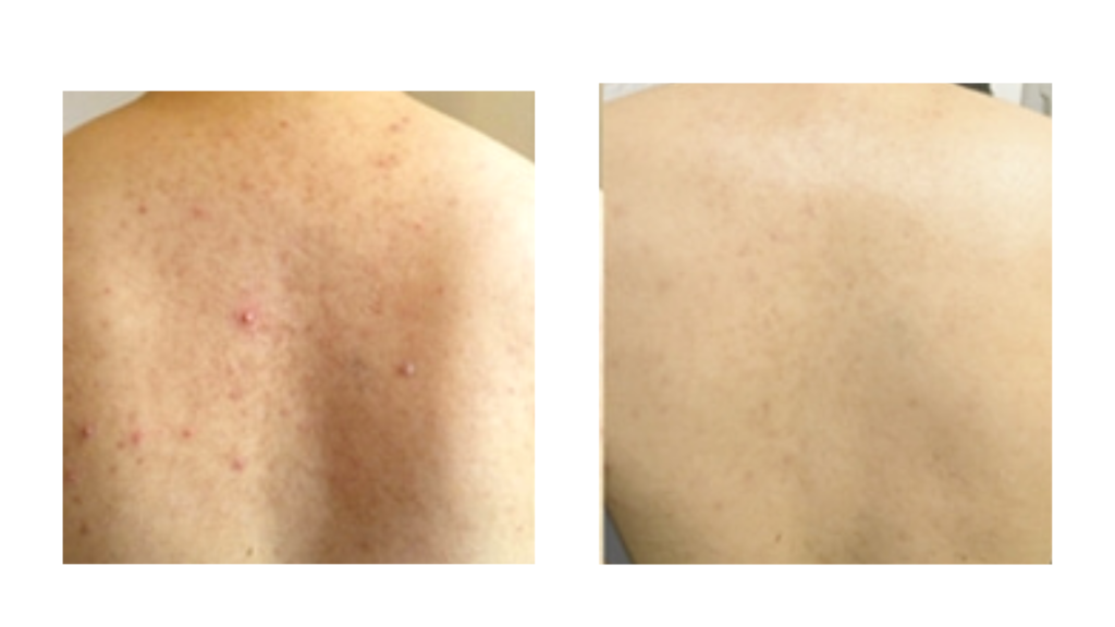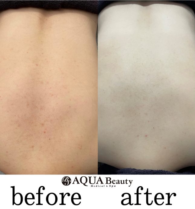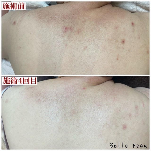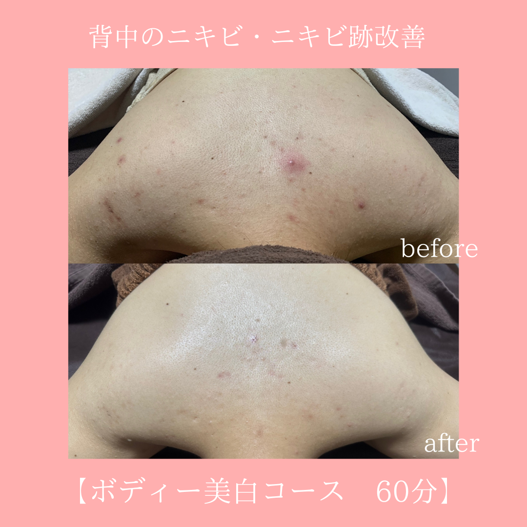 背中ハーブピーリング♡ ニキビ跡も薄くなり、背中全体の色ムラも改善‼︎‼︎ 続けることで必ず結果につながります‼︎♡ お背中のニキビはもちろん、お尻のニキビや黒ずみ、二の腕のブツブツなどにも効果的なハーブピーリングです♡お写真のご協力ありがとうございました。