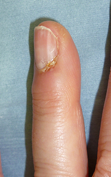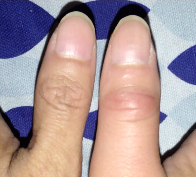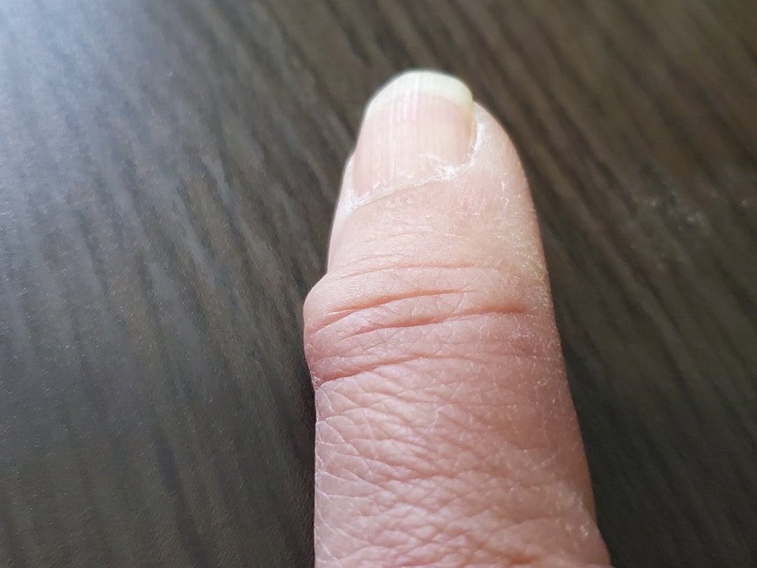指が化膿、爪の周りが白くなっている、爪周囲炎、瘭疽、指感染、痛み、化膿。