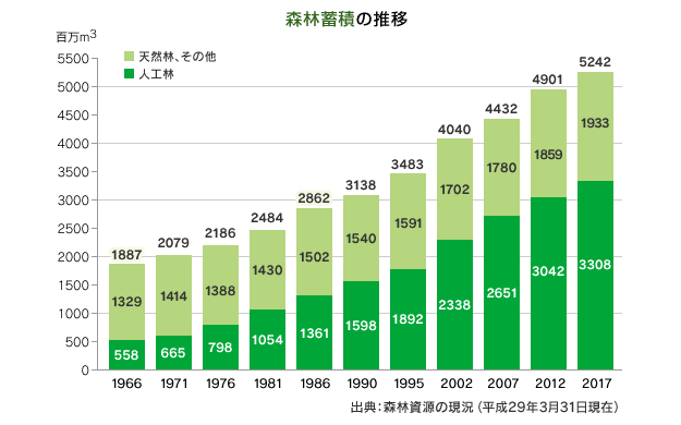 グラフで見る 日本の“森林・林業”が抱える問題と今後の課題や対策について解説恩加島木材工業株式会社。