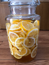 自宅でレモンのはちみつ漬けをつくってみたよ。気分転換にも疲労回復にもおすすめ。