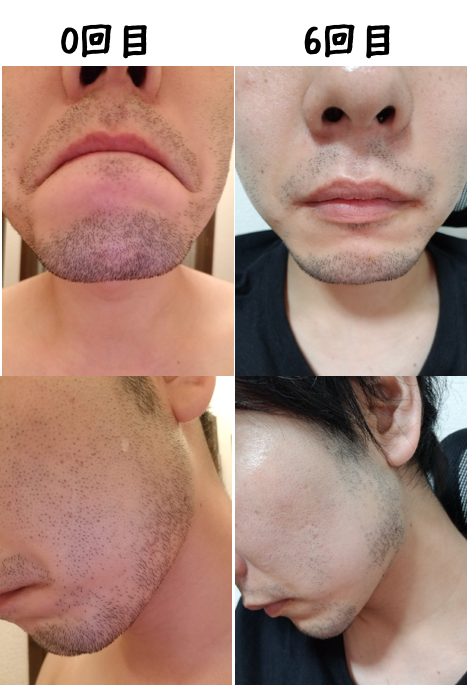 ゴリラクリニック髭脱毛5回目と6回目ヒゲ脱毛 経過写真。