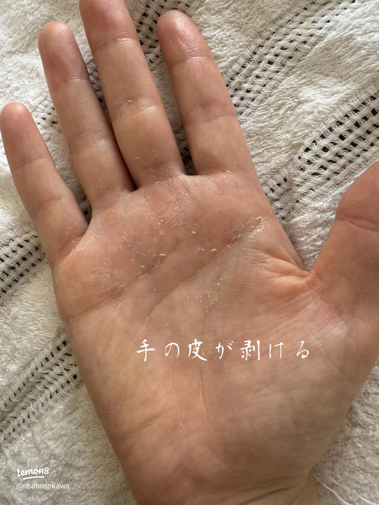 皮剥けの様子✨ 古くなった不要な角質だけが押し上げられだんだんと剥がれ落ち、綺麗なツルツルなお肌が現れます😆ペリペリッと剥がしたくなりますが、顔と同様 無理に剥がすと肌の負担になりますので🆖 お風呂に入るとふやけて自然と剥がれ落ちるので、なるべく触らない。