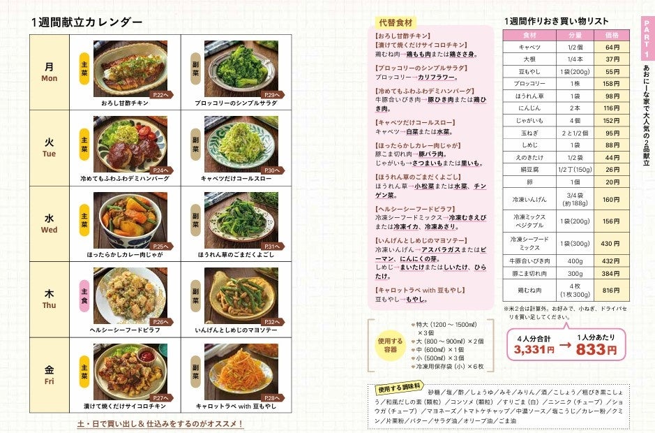 超簡単作り置きレシピで節約!あおにーなさんの新刊『1週間3000円台でできます! 毎日2品の作りおき献立レシピ』が発売!Nadia株式会社のプレスリリース。