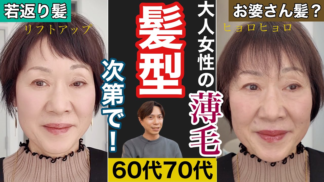 60代70代 注意!薄毛女性が貧相になるNG髪型とボリュームアップOKヘアを解説!細毛抜け毛をカバーし10歳若見え!大人女性似合うヘアスタイル ショートボブミディアム前髪ありなし 脱老け見えお婆さん。