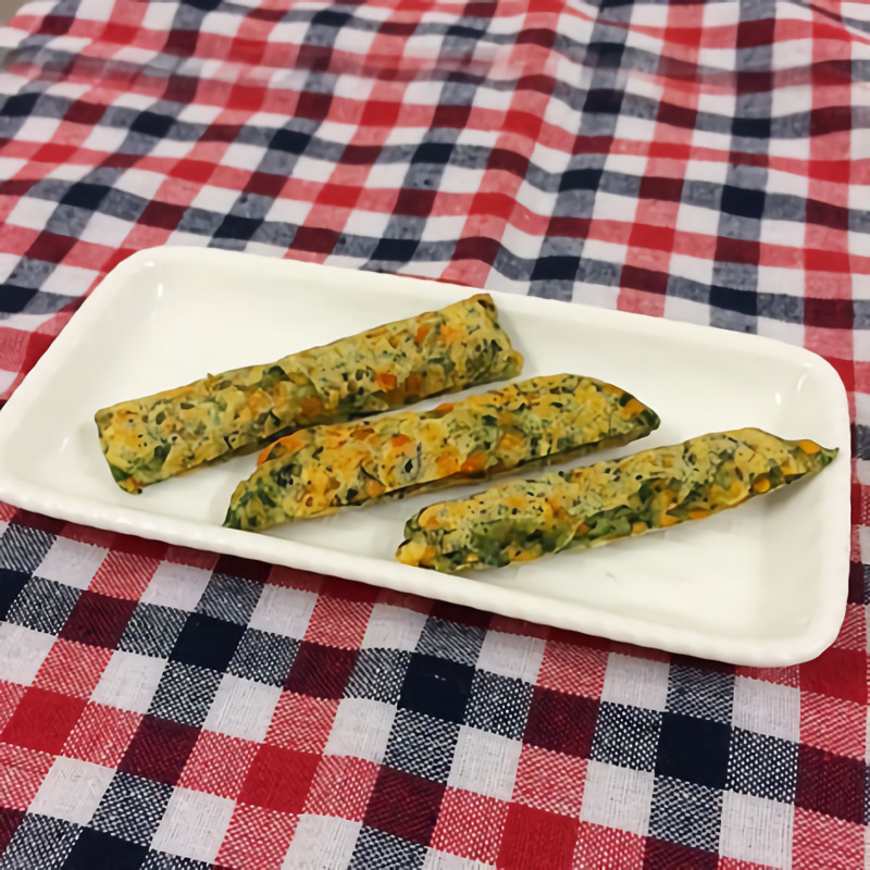 手づかみ離乳食 かぼちゃと鶏ミンチのスティックおやき かみかみ期。