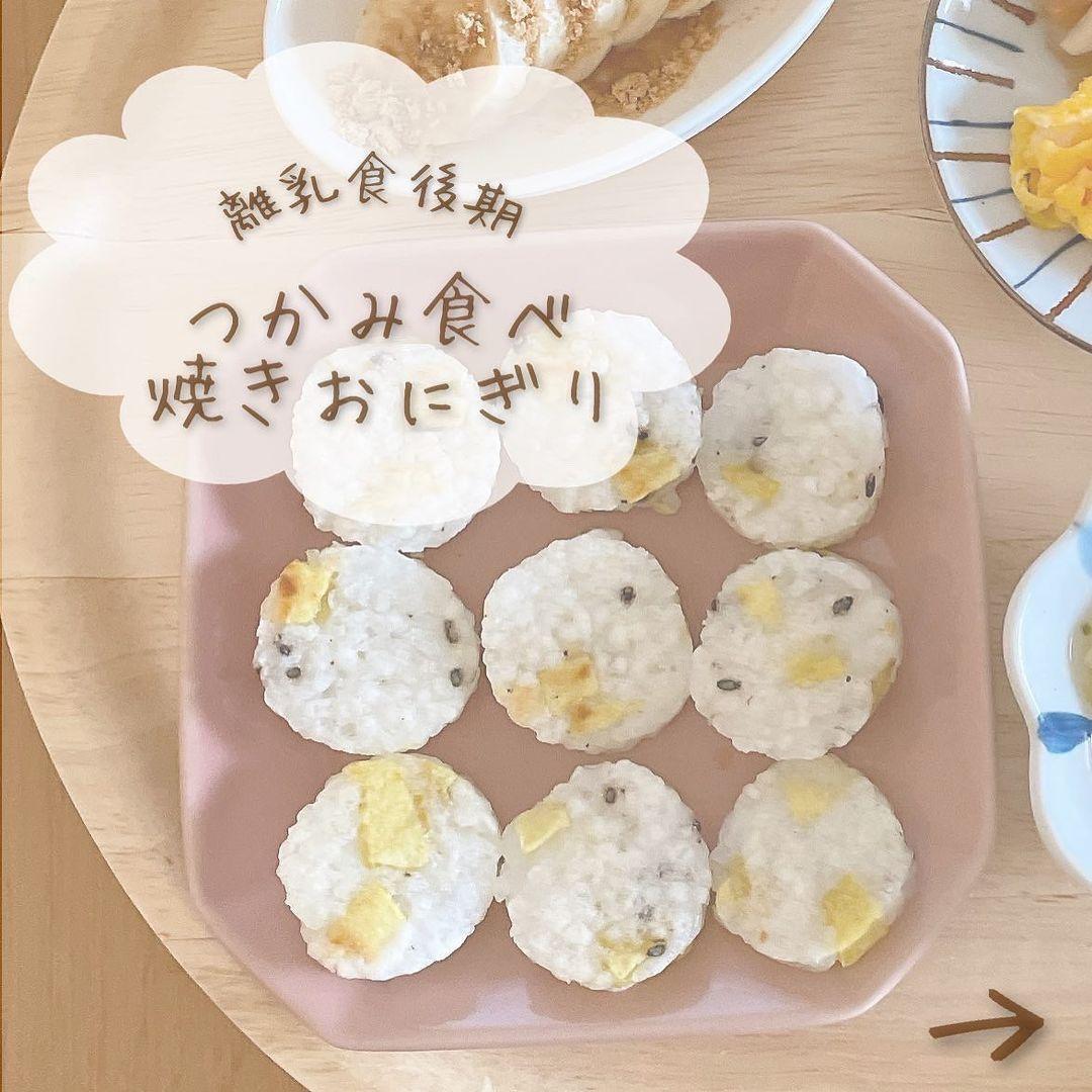 離乳食後期 つかみ食べ焼きおにぎり 2022.08.01千葉市全域・佐倉市・四街道市・八街市・東金市・大網白里市・酒々井町・中央区・花見川区・稲毛区・若葉区・緑区・美浜区・東京都の専門家からのアドバイスもぐもぐ?ぱくぱく?今日もおいしい離乳食特集! - 千葉の。