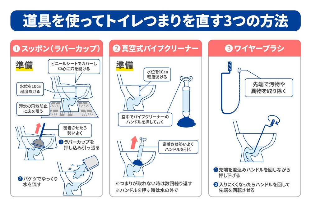 トイレつまりの症状と自力で安全に直す方法が一瞬でわかる!対処法から再発防止まで解説生活110番。