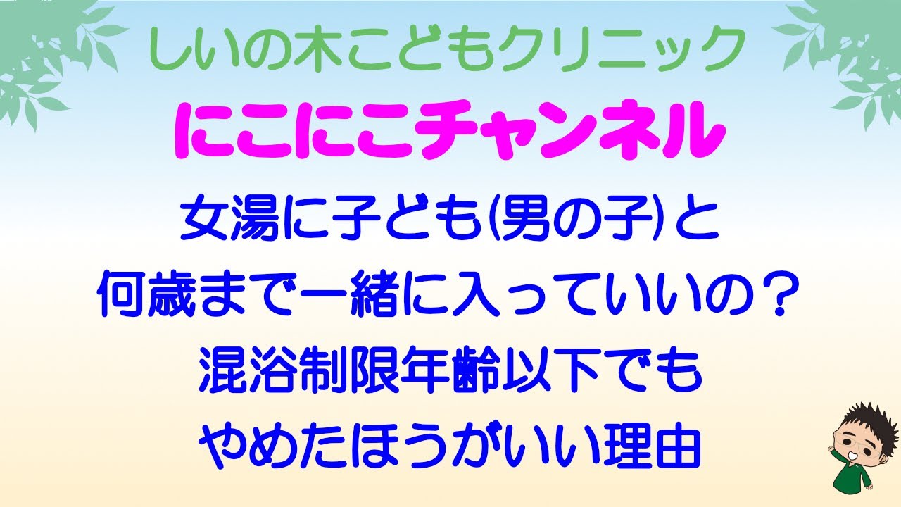 女湯に子ども 男の子 と何歳まで一緒に入っていいの?混浴制限年齢以下でもやめたほうがいい理由しいの木こどもクリニックブログ。