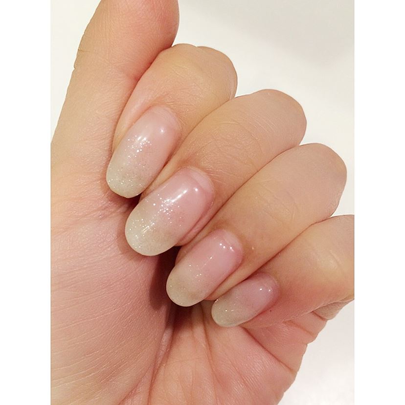 薄くなった爪がついに爪先まで伸びてきた のでフリーエッジが透けてる !ネイルエキスポ間に合いそうでよかった *^o^*。