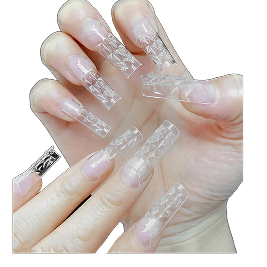 Amazon透明な四角い爪長い爪フルカバークリア人工爪 3D 効果で簡単にネイルエクステンションに適用できます付け爪のヒントFogunネイルチップ 通販。