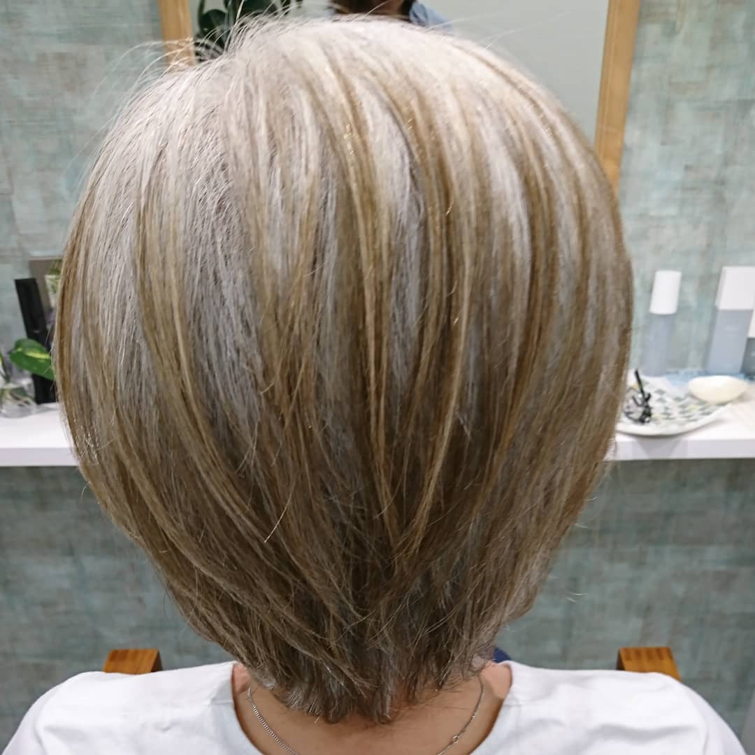 大阪の心斎橋の 綺麗にグレイヘア移行するお手伝いを 得意とされている美容師さん @mitsuki_grayhair 白髪染めを使わない白髪の透明感を活かす 魅せるグレイヘア をモットーにされていて 髪先までトゥルントゥルン綺麗に して頂きました! 悩まれている方、是非一度ご。