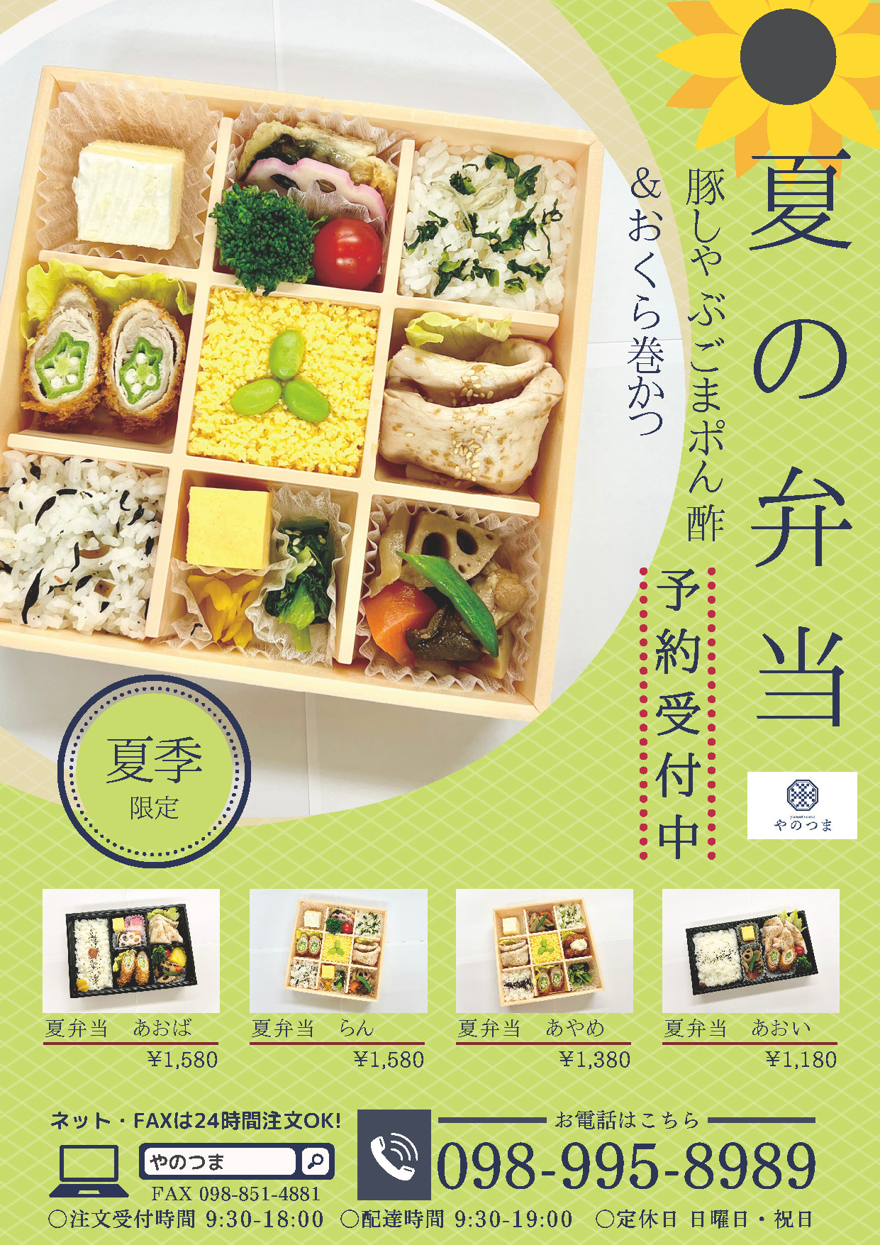 夏のお弁当特集やのつま高級弁当、オードブルを那覇市中心に宅配、デリバリ。