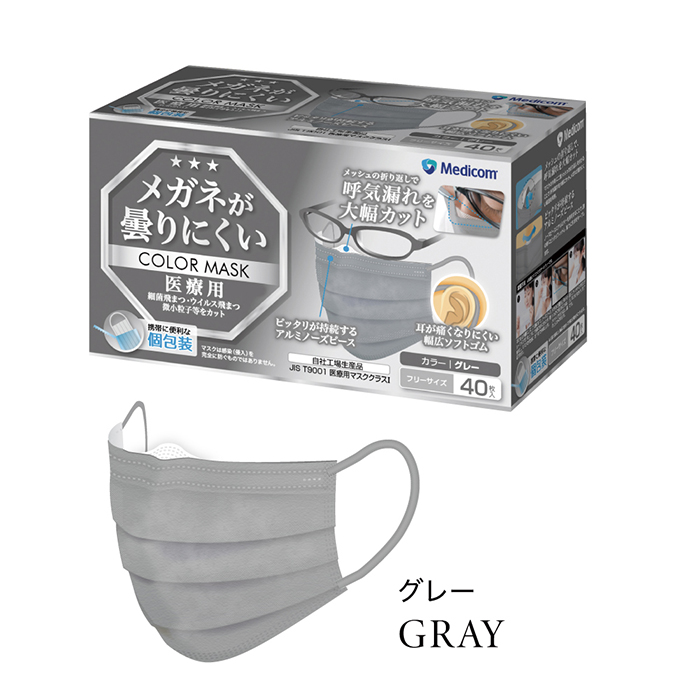 メディコムジャパン メガネが曇りにくいカラーマスク グレーJMK200698 1箱 40枚入- アスクル。