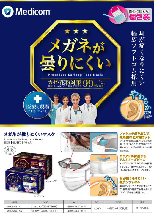 医療用 メガネが曇りにくいマスク 40枚入・返品不可商品medicom製品 JMK200。