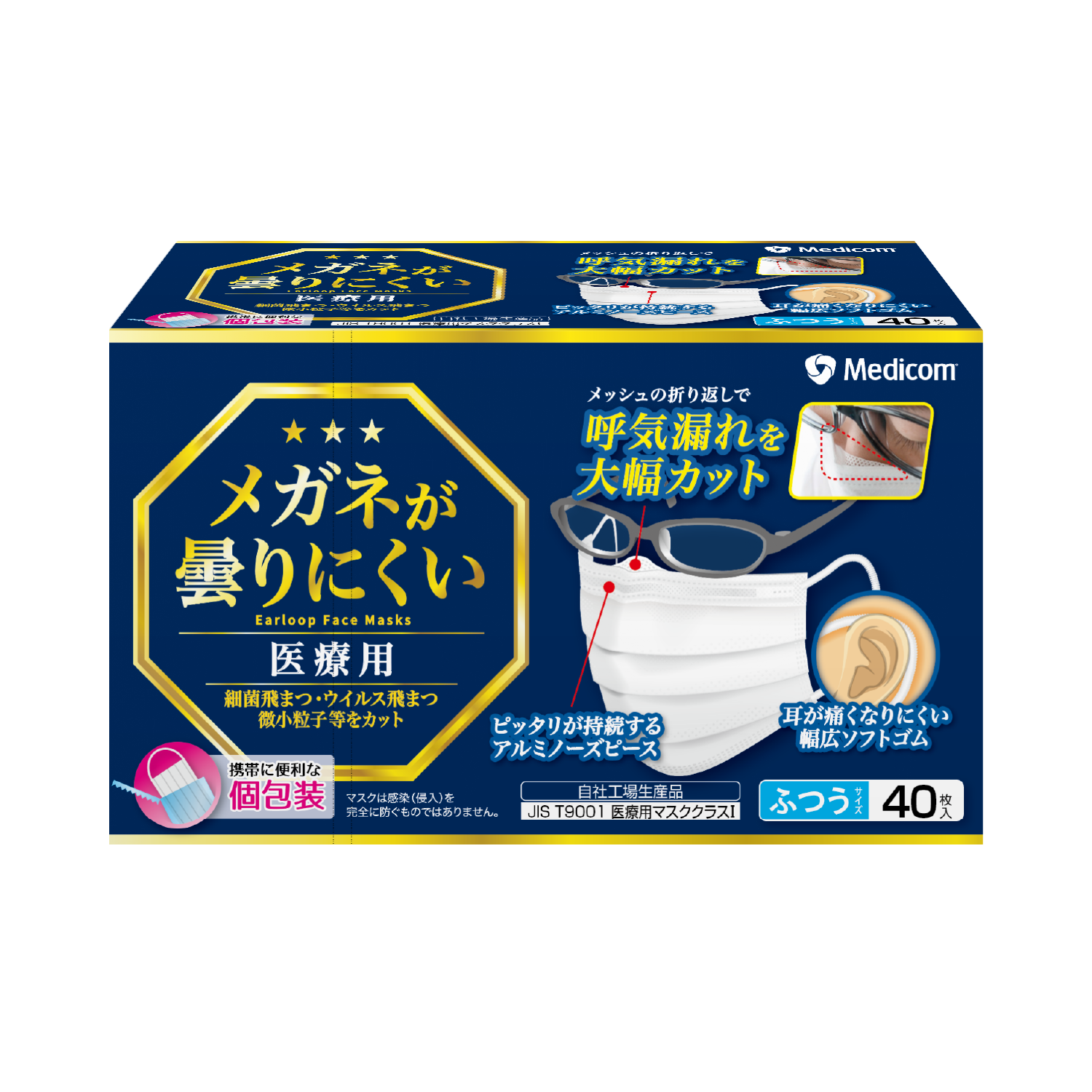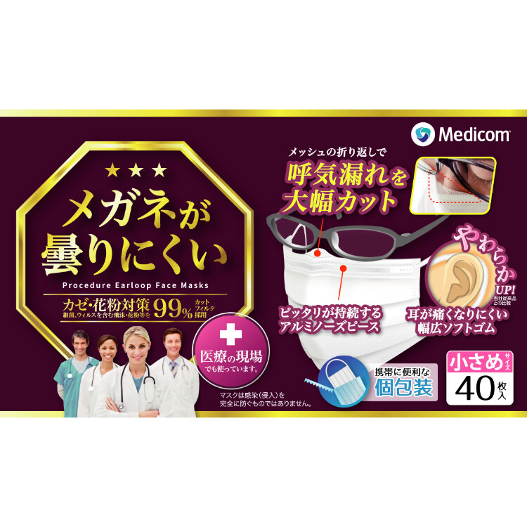 メディコム メガネが曇りにくい マスク 40枚入 ※サイズをおえらびください。 ふつう・小さめ。
