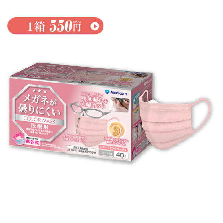 楽天市場 メガネが曇りにくいマスクピンクベージュ 個包装 メディコムジャパン 医療用 サージカルマスク 1箱40枚 メガネが曇らない 花粉症対策PM2.5対策 不織布 全国マスク工業会会員 ASTM対応 不織布 制限無し コロナ対策 感染症対策 使い捨て 快適 衛生用品 高性能。