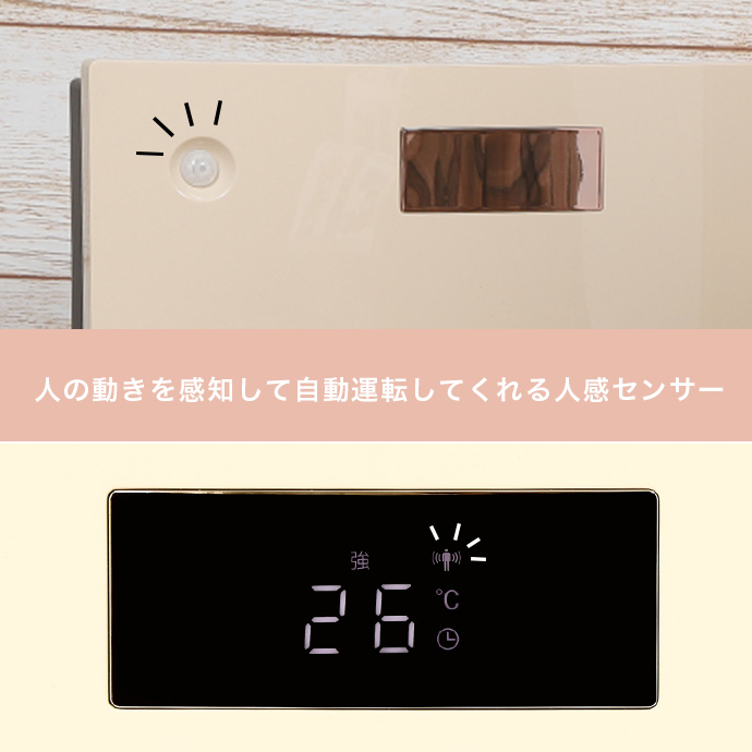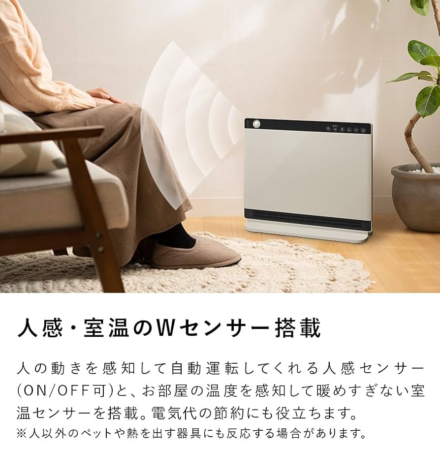 超音波加湿機能 人感センサー セラミックヒーター ファンヒーター 自動首振り。