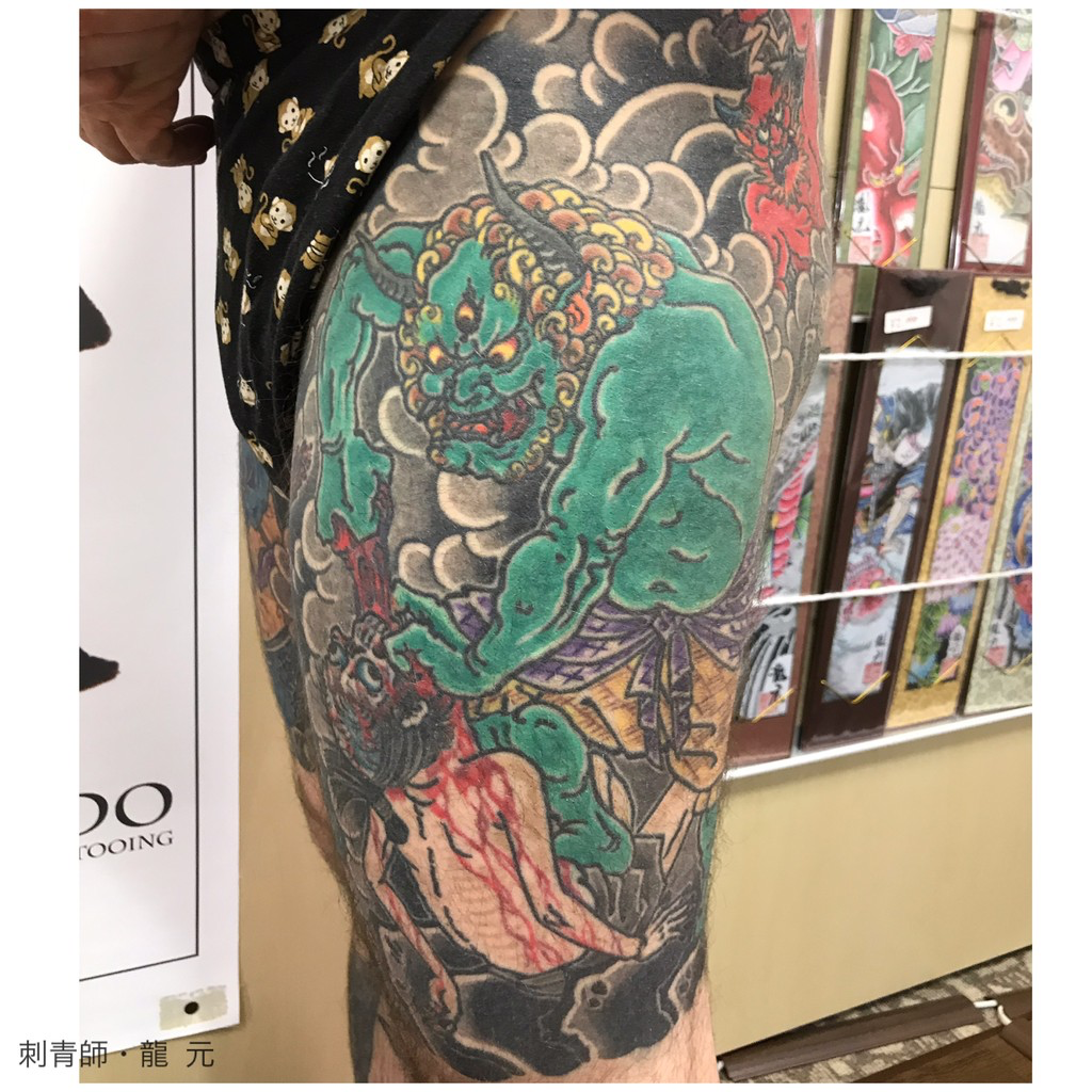 Ryugendo Traditional Japanese Tebori Tattooing - 地獄絵図 皮剥ぎ; 半ズボン Peeling,Scene in hell; half pants地獄鬼刺青龍元helloniirezumiryugenFacebook。