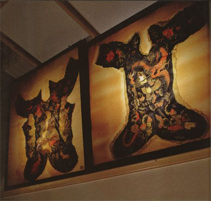 文身皮膚」。福士政一は病理学者で、約2000枚の刺青が入った人間の皮を蒐集しました。医学的な関心から死体の皮を剥いで保存し、献体者は皮を提供するのと引き換えに生活費を援助してもらいました。彼のコレクションは東京大学医学部標本室に収蔵されています。文身皮膚。