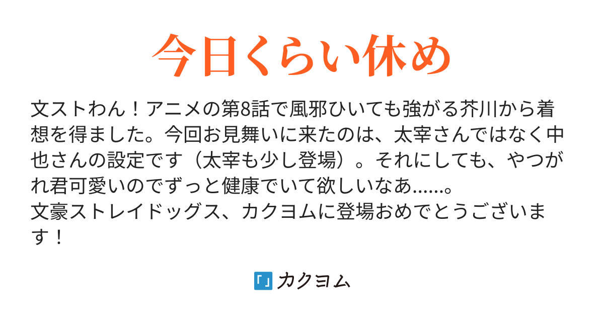 短編完結。 - 風邪ひく芥川と看病する中也ママ 歩夢- カクヨム。