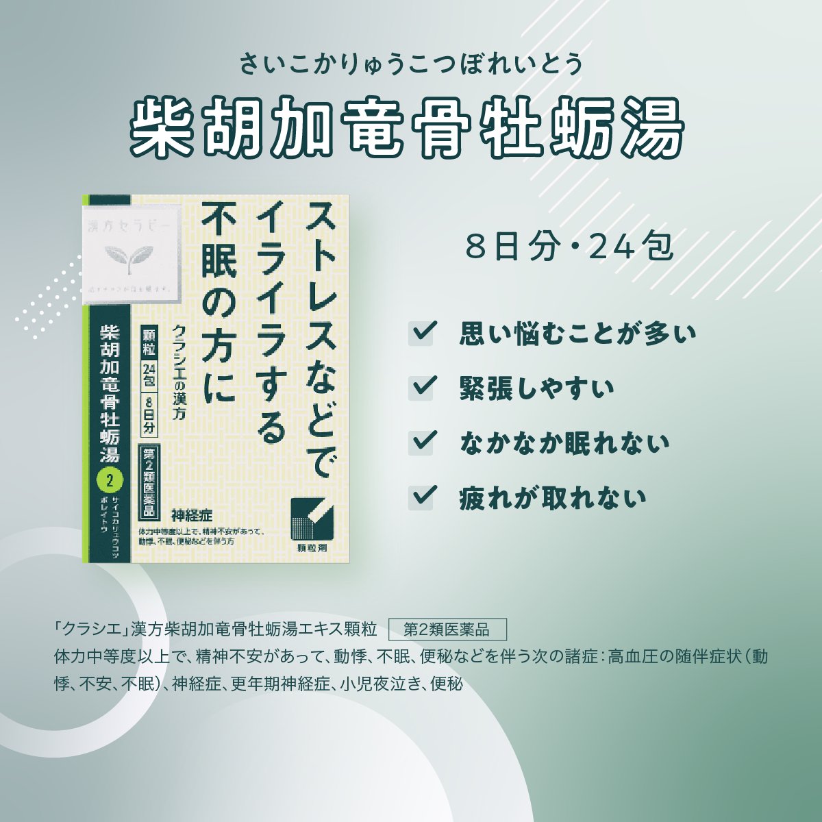 クラシエ 漢方セラピー 公式on X: "⋱柴胡加竜骨牡蛎湯 とは?⋰ 精神的に不安定・なかなか眠れない方向けの漢方薬です🌱柴胡加竜骨牡蛎湯 さいこかりゅうこつぼれいとう は、カラダにこもった熱を冷ますとともに、心を落ち着かせる作用があるため、脳の興奮から。