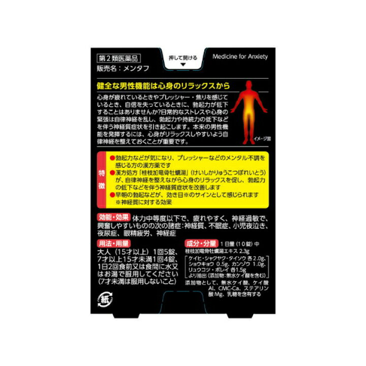 楽天市場第2類医薬品メンタフ 50錠入 医薬品 市販薬 小林製薬 不調 メンタル 焦り 不安 漢方製剤 精気 萎える バランスの乱れ ストレス神経質 リラックス 不眠症 疲れ 桂枝加竜骨牡蠣湯 けいしかりゅうこつぼれいとう : 四日町薬局。
