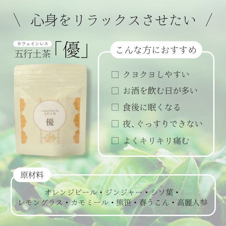 楽天市場LINE追加で最大500円オフ 漢方茶 五行シリーズ 「優」10包・30包・50包 カフェインレス ストレス対策 メンタルケア 睡眠リラックス ストレス 安眠 寝る前 夜 ぐっすり ササマリー 漢方ハーブティー 漢方茶 かんぽう茶 お茶 Sasamary : 漢方とセルフケアの。