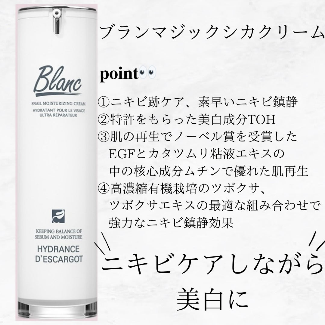 BLANC公式 マジックシカクリーム 60ml カタツムリエキス含有高濃縮シカクリーム トラブル跡ケア 保湿 敏感肌 肌荒れ 吹き出物 色素沈着肌トラブル スキンケア 弾力 乾燥肌 トーンアップ Blanc ブラン のカタツムリクリームでニキビ跡を効果的にケア。