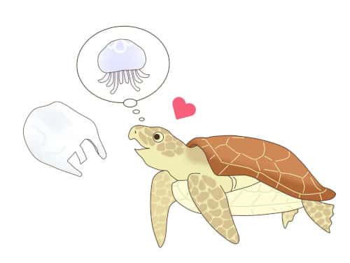 ウミガメがクラゲと間違えてビニール袋を食べちゃうってほんと。