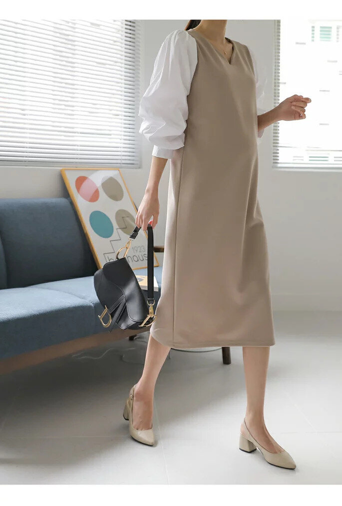 授乳服 マタニティ 服 ワンピース ボリュームスリーブ ドロスト ギャザーワンピース 妊婦服 長袖 通勤 仕事服。