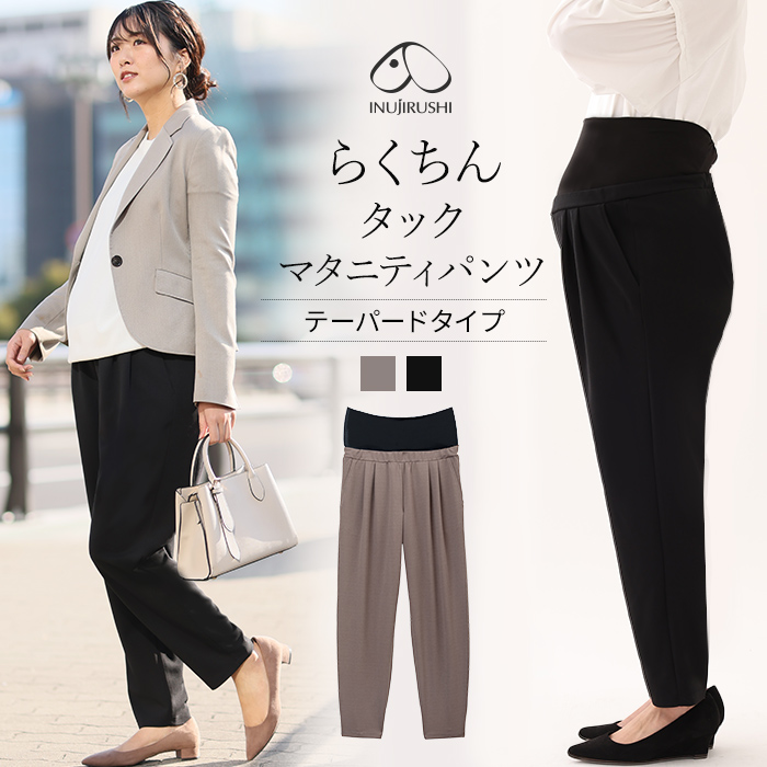 マタニティ パンツ スーツ テーパードパンツ スラックス オフィス きれいめ 事務服 通勤 仕事 フォーマル スーツパンツ 産前 産後 妊娠用 結婚式マタニティ パンツ らくちんタックパンツ マタニティウエア 産後服 犬印マタニティウェア 授乳服 マタニティインナー 産後。