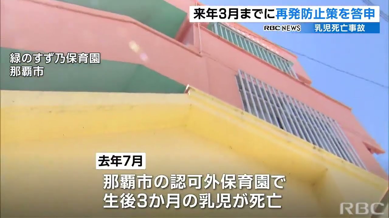『緑のすず乃保育園』乳児死亡事故検証委員会が再発防止策を那覇市に答申へ。