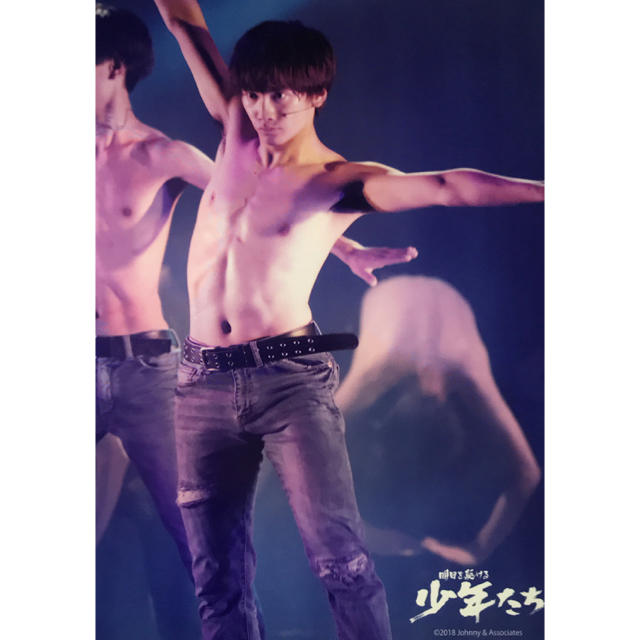駿河屋 -<中古>関西ジャニーズJr. 藤原丈一郎 ライブフォト・膝上・上半身裸・衣装水色・右手上げ・左手伸ばし・目線左・背景水色 「明日を駆ける少年たち」ステージフォト 男性生写真。