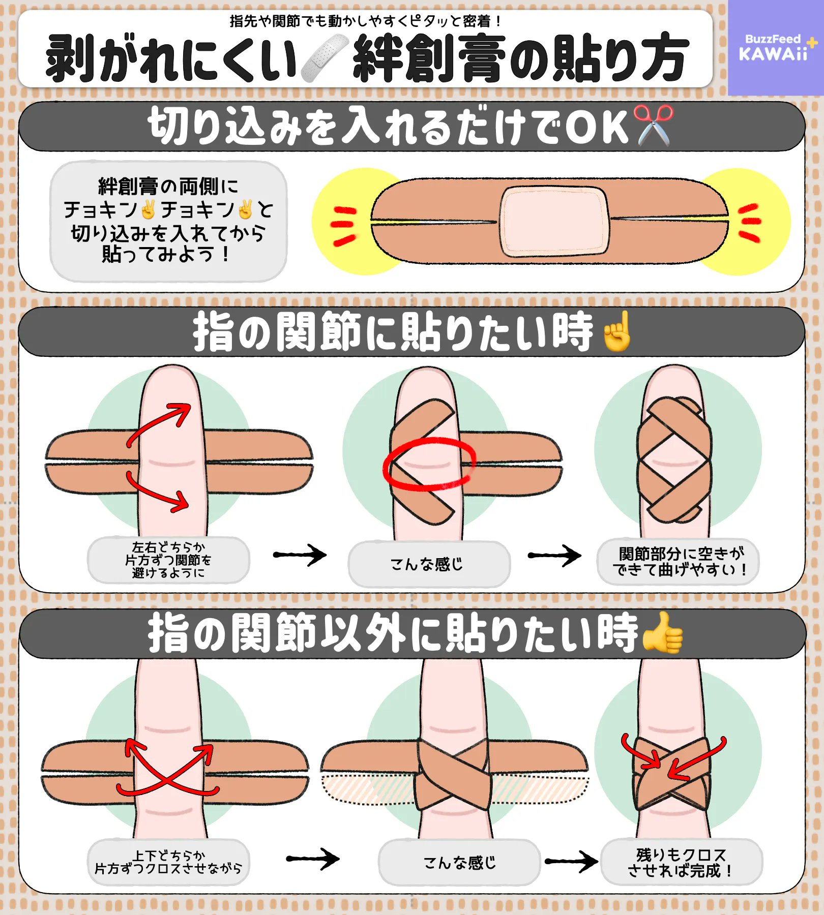 指先でもはがれない! ばんそうこうを「クロス」して貼る方法が便利だったねとらぼ。