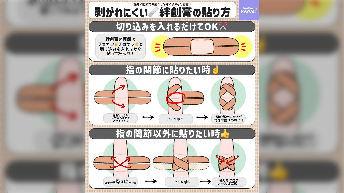 剥がれにくい絆創膏の貼り方。「知れてよかった」「指先でもしっかり貼れる」と感動の声 - macaroni。