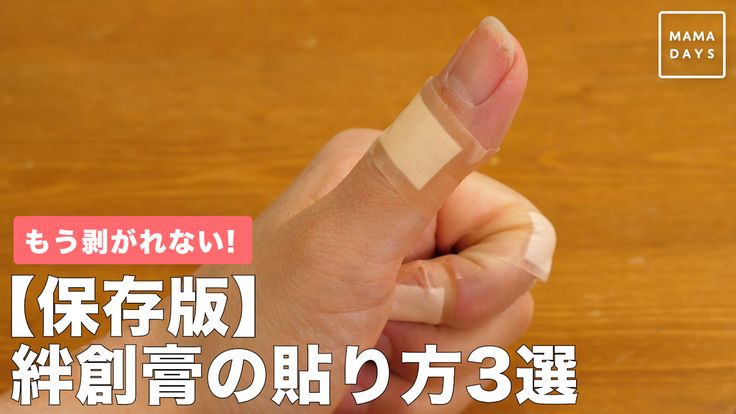 はがれにくい絆創膏の貼り方ご存知ですか?ちょっとしたケガで活躍する絆創膏。 貼る部位によっては簡単に剥がれやすく、何度も貼りなおしたりすることありませんか?実は、絆創膏にひと工夫加えるだけで、剥がれにくく指も動かしやすくなります! 赤十字幼児安全法。
