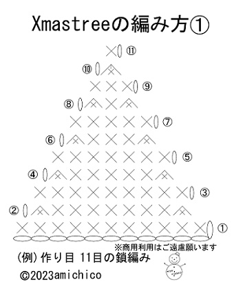 Xmastreeかぎ針編み編み図モチーフタグクリスマスプレゼントamichicoの編み物と手作りの部屋。