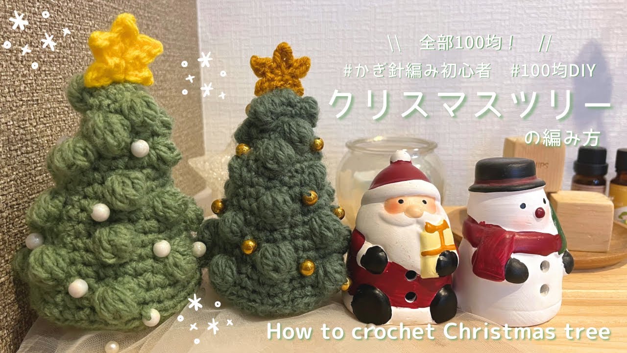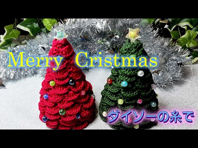 How to crochet Christmas Tree 100均材料で作るかぎ針編みクリスマスツリ。