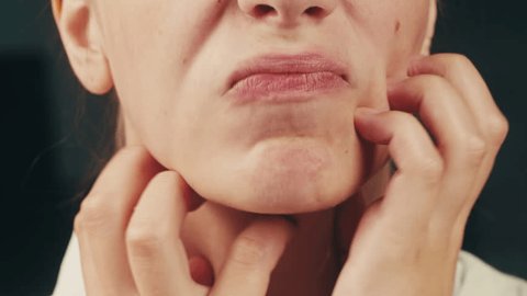 女は唇を噛む。神経性チック。強迫症。唇をかむ精神科医患者,ひっかき顔,爪をかむ,目のひきつり。接写、マクロ。」の動画素材 ロイヤリティフリー 1109374835Shutterstock。